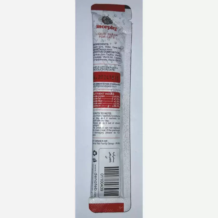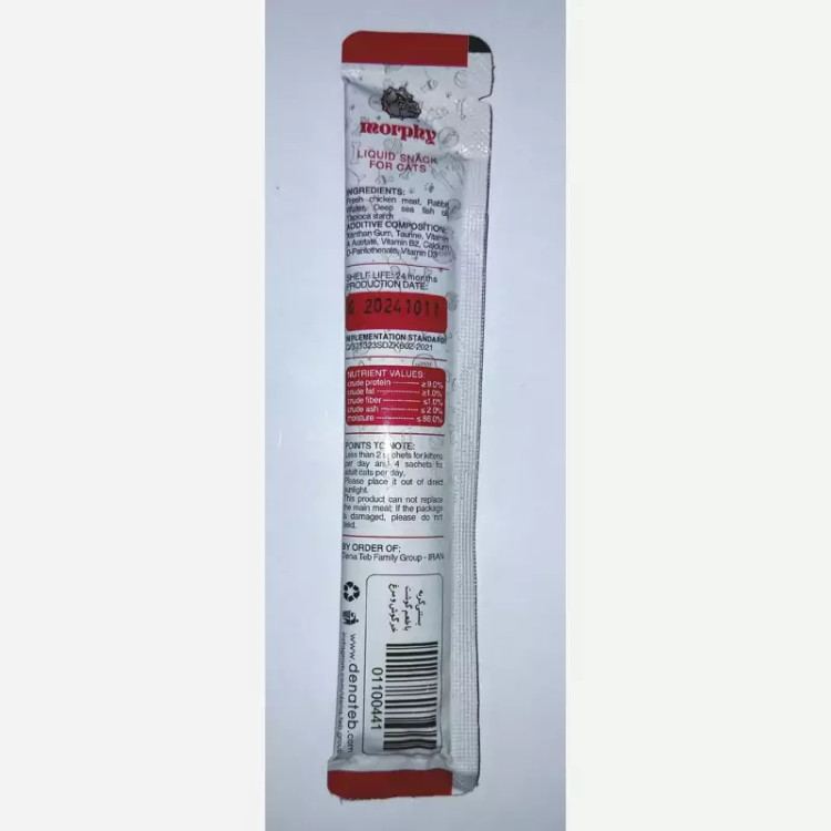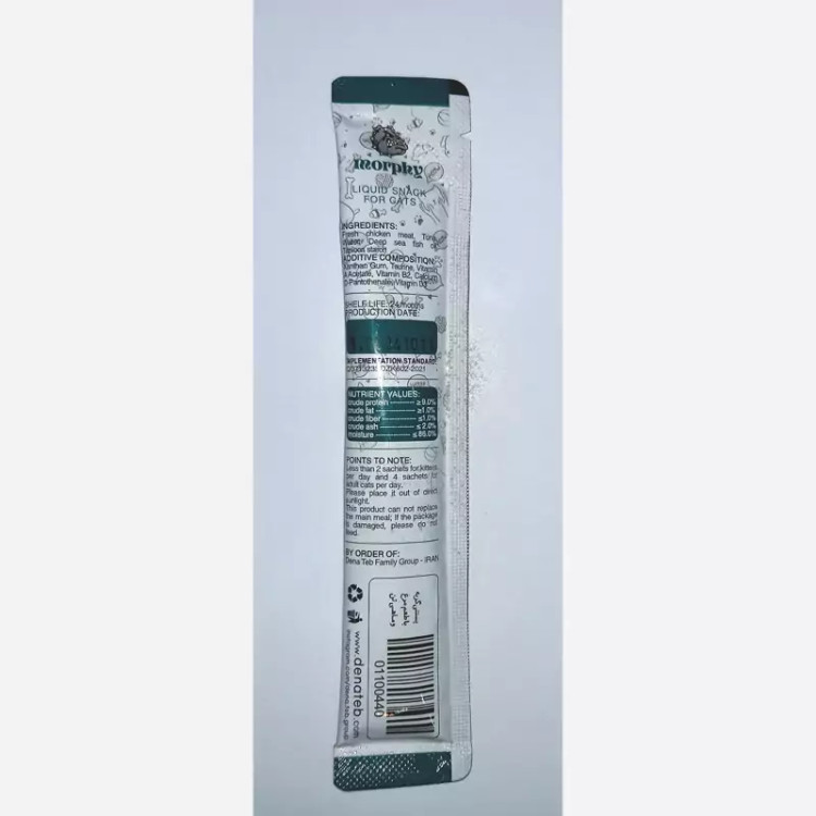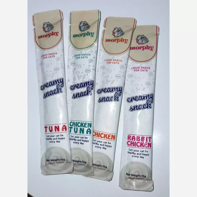 میان وعده خوشمزه و کم کالری حاوی ویتامین A، ویتامین B2، ویتامین D3، کلسیم با چهار طعم مختلف مرغ، طعم گوشت خرگوش و مرغ، طعم مرغ و ماهی تن و همچنین ماهی تن