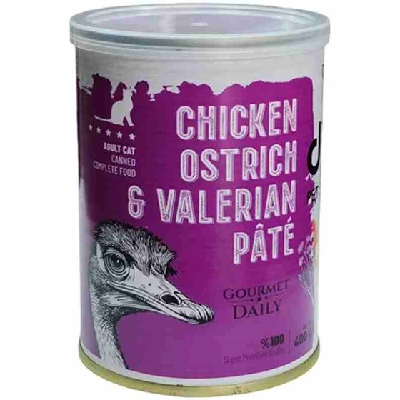 کنسرو گربه دی پی اس پته با طعم گوشت مرغ و شترمرغ و سنبل الطیب 430 گرمی