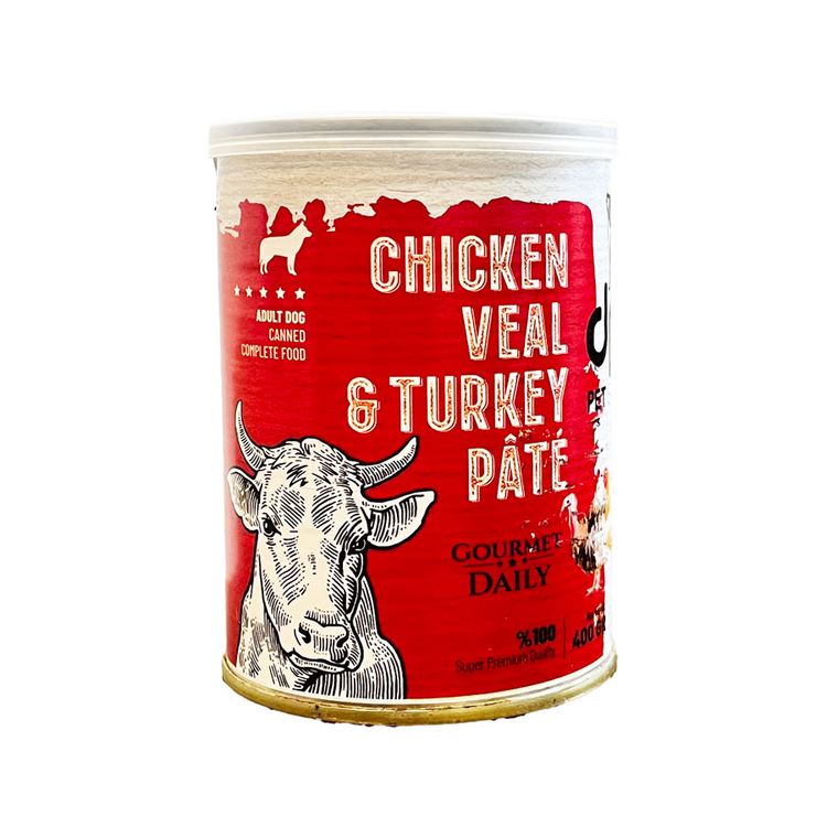 کنسرو غذای گربه دی پی اس مدل پته با طعم گوشت گوساله و بوقلمون و مرغ 800 گرمی