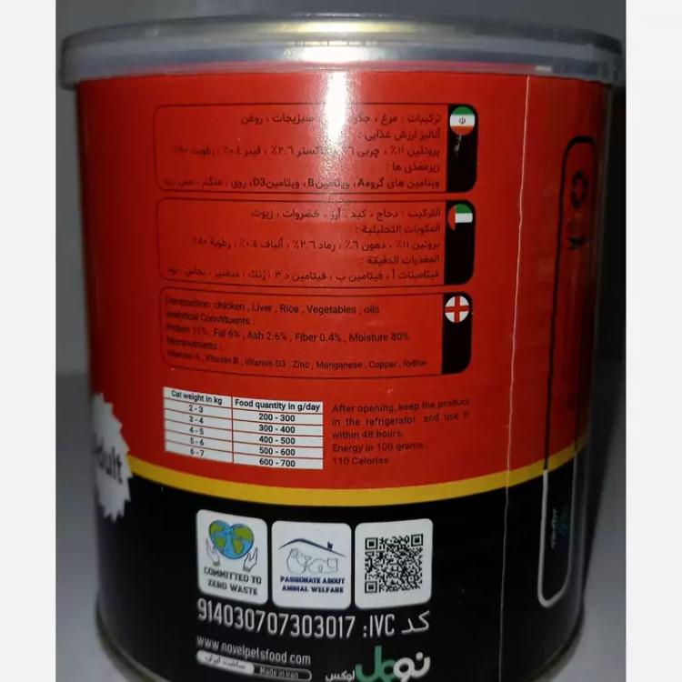 کنسرو گربه نوول لوکس پته 800گرمی مرغ و جگر