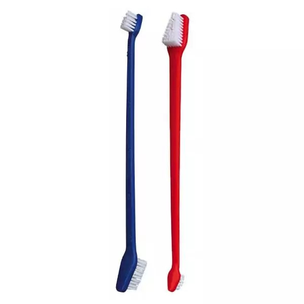 برسهای نرم و مناسب تمیزکردن جرم میان دندان دو عدد مسواک دوطرفه مخصوص سگ و گربه مناسب برای تمامی سنین حیوانات خانگی مناسب برای تمامی نژادهای گربه و سگ جنس بدنه پلاستیک انعطاف پذیر مسواک برای کاهش رسوب و باکتریهای مضر دهان حیوانات مفید بوده و با مصرف منظم کمک به بهداشت دهان و دندان کرده و باعث جلوگیری از بوی بد و بعضی بیماریهای حیوانات میشود بلند بودن وشکل خواص این مسواک باعث سهولت در نظافت دندانها خصوصا دندانهای آسیاب میشود دو رنگ قرمز و آبی