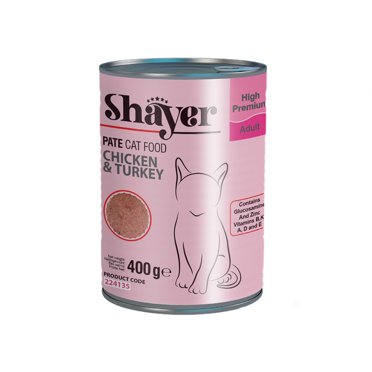 کنسرو گربه شایر پته طعم مرغ و بوقلمون 400گرمی
