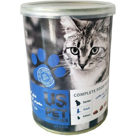 کنسرو غذای گربه یو اس پت با طعم گوشت گوساله و مرغ و بوقلمون 430 گرم